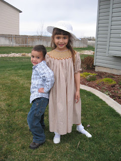 We really had a good Easter day. We went to the church early as usual, so we could get a good parking space....and luckily we got one in front of the church. It was very crowded, all the chairs were occupied. Some of the congregation just managed, standing up till the service was over. When we got home Marianne and Kenny asked if we're going to have an egg hunt. They are so excited, especially about the gifts they're getting. So, Marianne started to put the candies in the plastic eggshells and we waited till Lorna came over to help hide the eggs in the yard. It was fun, looking for a good place to hide the eggs made you think "no wonder the kids loves this":-) If only daddy was here it would be so much fun....